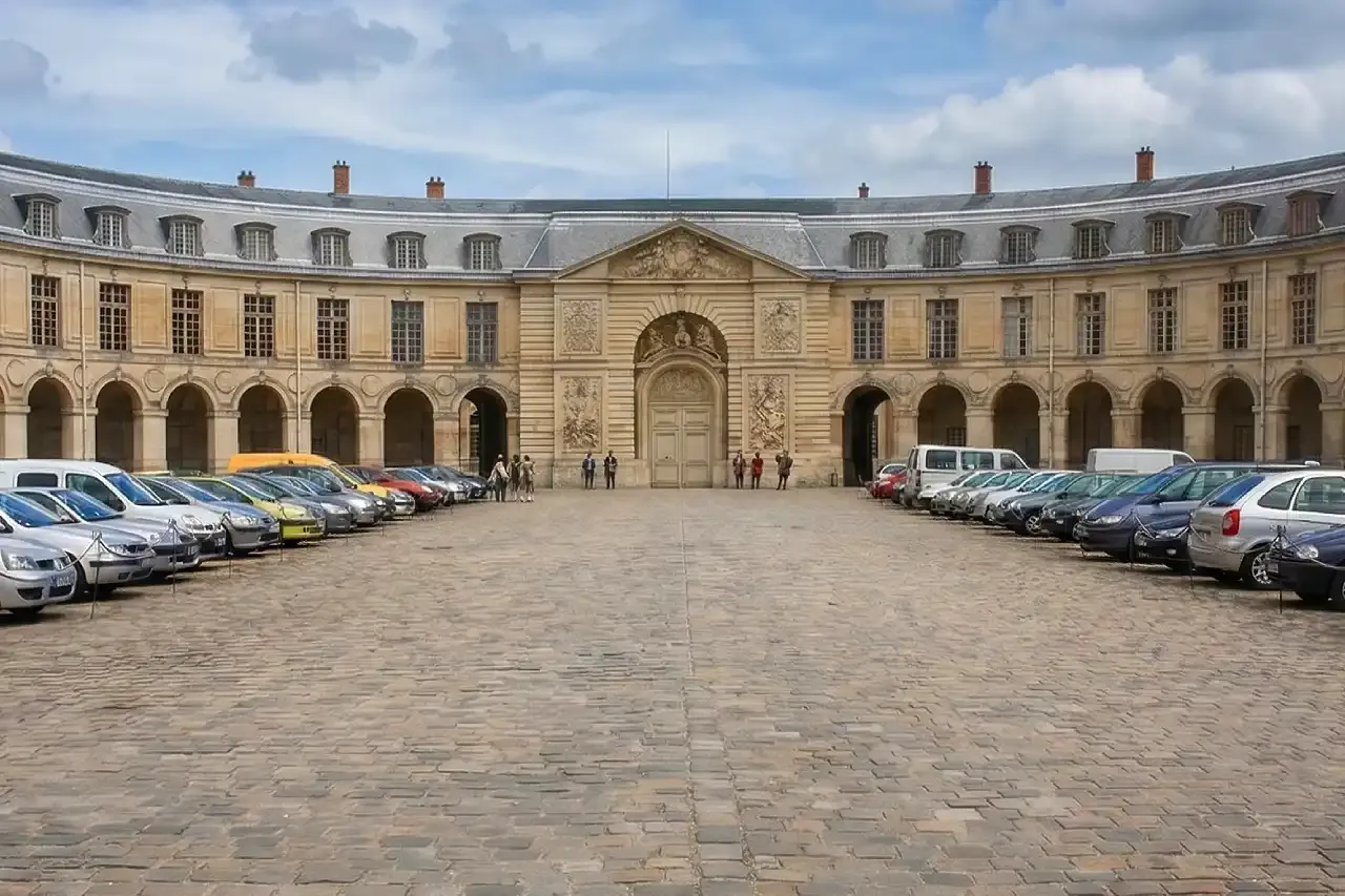 Autofahrer finden Parken am Schloss Versailles auf dem Place d'Armes und an weiteren strategischen Standorten im gesamten Schlossgelände. Diese kostenpflichtigen Einrichtungen stehen Besuchern zur Verfügung, die mit dem Privatfahrzeug oder Reisebus anreisen, und sind während der regulären Öffnungszeiten des Anwesens geöffnet.